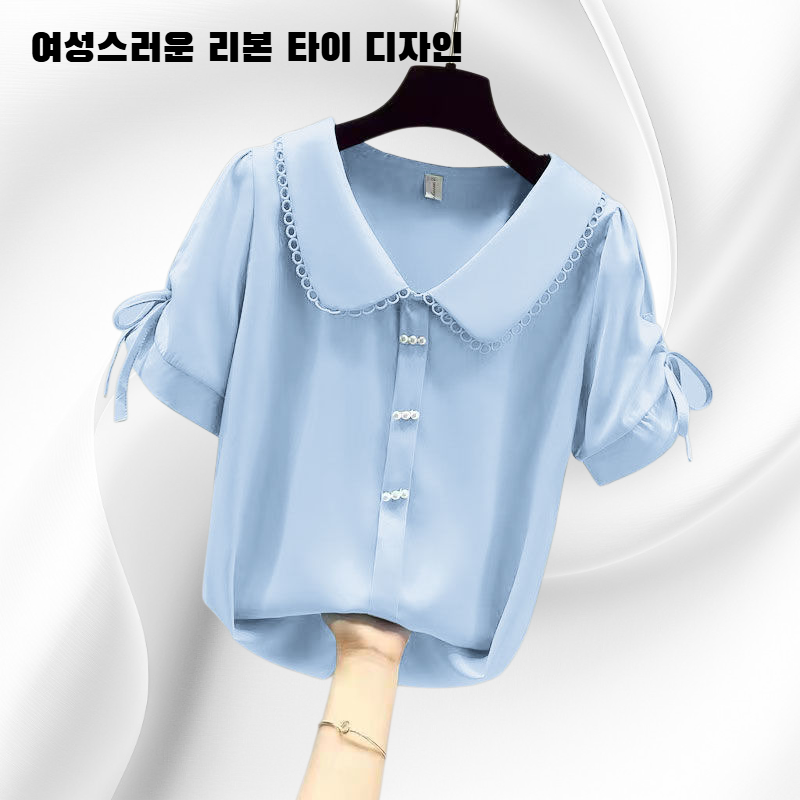 여성스러운 리본 타이와 가벼운 쉬폰 소재로 제작된 블라우스입니다. 데일리룩, 오피스룩 모두에 적합하며, 다양한 하의와 매치가 가능합니다.